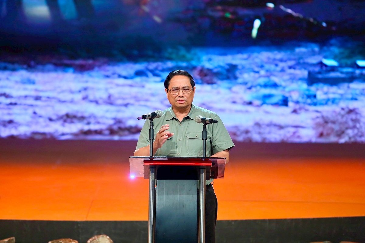 Phát biểu tại chương trình, Thủ tướng Chính phủ Phạm Minh Chính ghi nhận, đánh giá cao và biểu dương các cơ quan báo chí trong suốt thời gian qua đã làm tốt nhiệm vụ định hướng thông tin, hướng dẫn kỹ năng và truyền thông những hình ảnh truyền cảm xúc, tạo động lực cho cả dân tộc cùng nhau chung sức, đồng lòng phòng, chống và khắc phục hậu quả bão số 3. Ảnh: VTV |