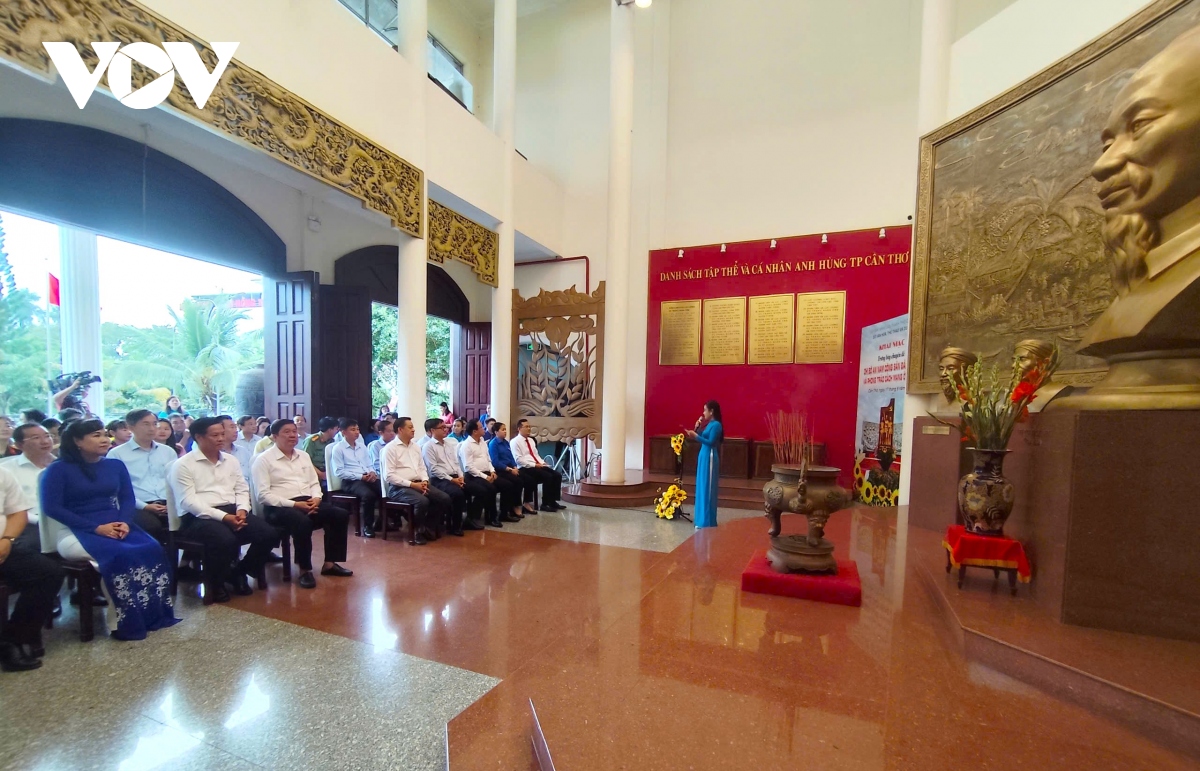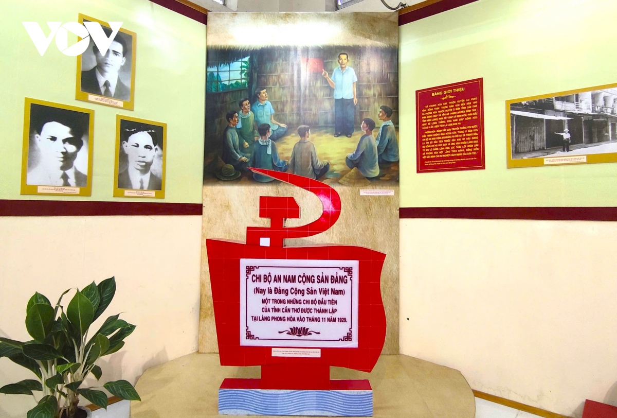 Trưng bày chuyên đề giới thiệu đến khách tham quan hơn 150 tư liệu, hình ảnh, hiện vật lịch sử về Chi bộ Đảng Cộng sản đầu tiên của Cần Thơ và sự thành lập Đảng Cộng sản Việt Nam (03/02/1930). Ảnh: Hồng Phương/VOV |