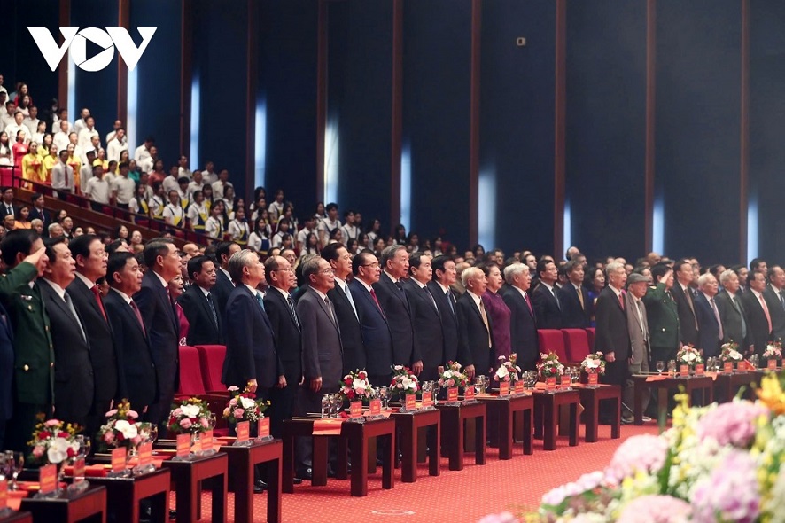 Tổng Bí thư, Chủ tịch nước Tô Lâm cùng các lãnh đạo, nguyên lãnh đạo Đảng, Nhà nước đến dự buổi lễ. Ảnh: Hà Phương/VOV |