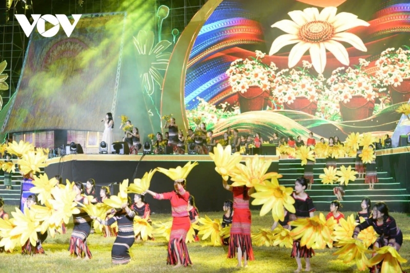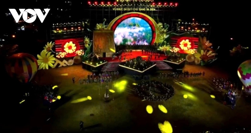Tối 9/11, UBND tỉnh Gia Lai tổ chức chương trình nghệ thuật “Vũ khúc dã quỳ - Chư Đang Ya 2024” diễn ra tại khu vực Nhà rông làng Ia Gri (xã Chư Đang Ya, huyện Chư Păh). Đây là hoạt động văn hóa văn nghệ nằm trong “Tuần lễ Hoa dã quỳ - Núi lửa Chư Đang Ya” tỉnh Gia Lai. Ảnh: VOV |