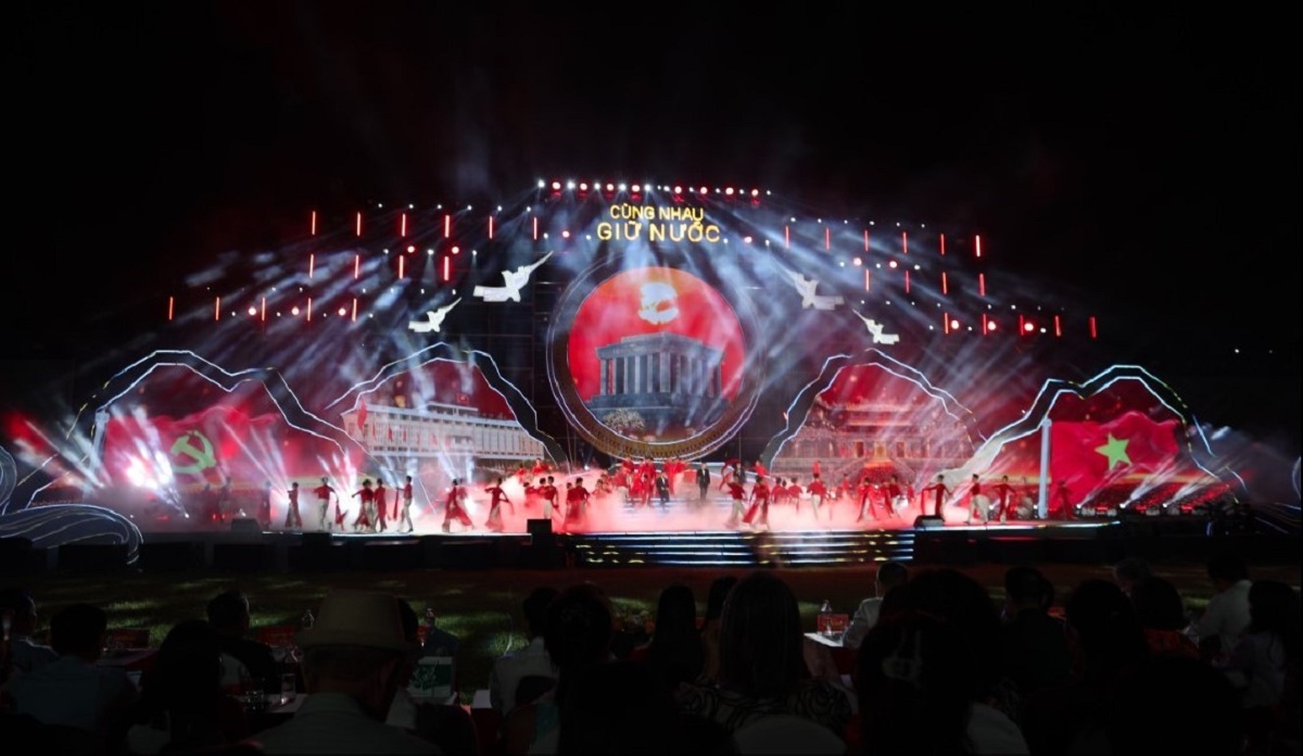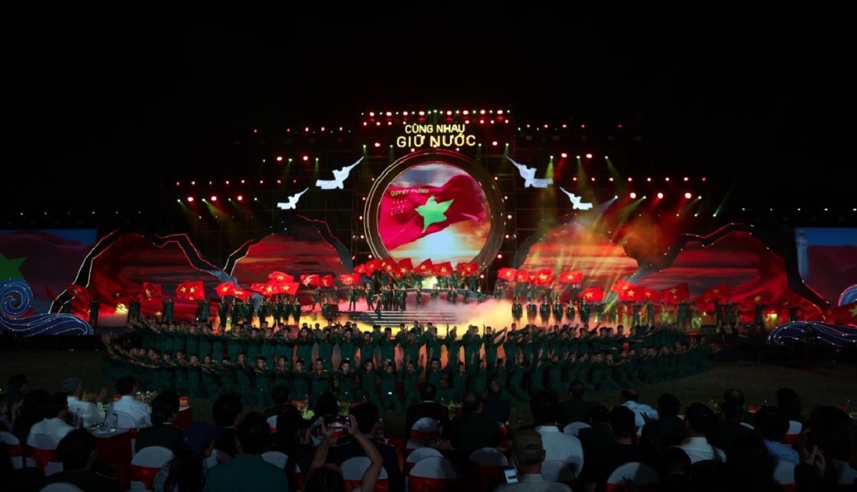 Sắc đỏ tự hào trên sân khấu chương trình "Cùng nhau giữ nước." Ảnh: Minh Anh/Vietnam+ |
