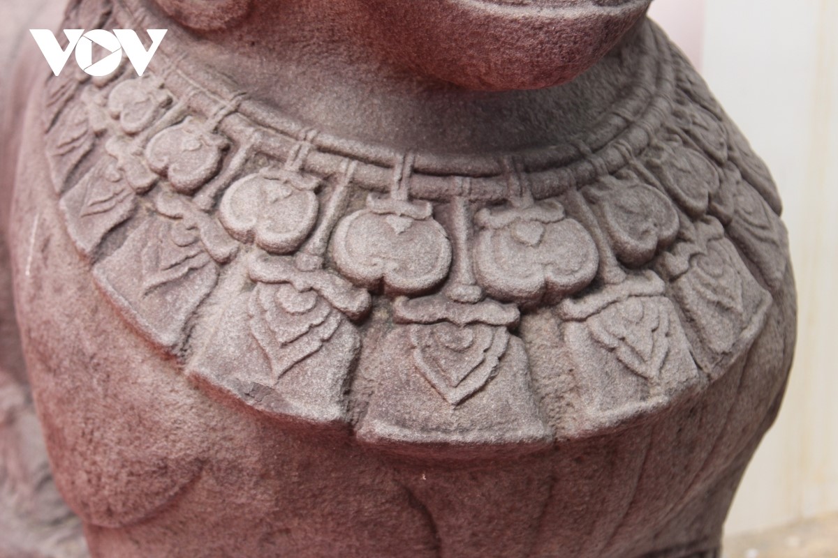 Hoa văn được chạm khắc trên tượng sư tử đá. Ảnh: VOV |