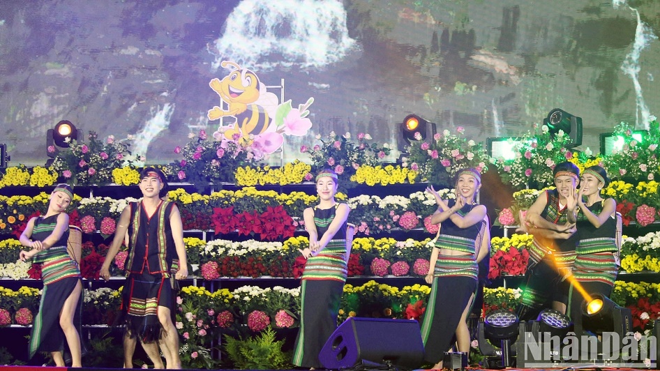 Với chủ đề “Hoa Đà Lạt – Bản giao hưởng sắc màu”, Festival hoa Đà Lạt lần thứ 10 năm 2024 có 10 chương trình chính và 45 chương trình hưởng ứng lần lượt diễn ra trong gần một tháng qua. (Trong ảnh: Tiết mục văn nghệ mở màn đêm bế mạc Festival hoa Đà Lạt lần thứ 10 năm 2024 kết hợp chương trình nghệ thuật chào đón năm mới 2025. Ảnh: VOV) |