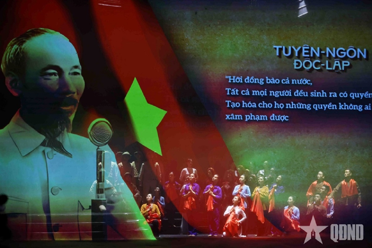 Chương trình nghệ thuật được đầu tư công phu, sáng tạo. Với chủ đề “95 mùa Xuân và các kỷ nguyên của dân tộc”, chương trình gồm ba chương xuyên suốt, mỗi chương mang một thông điệp riêng nhưng cùng hòa quyện tạo nên bức tranh tổng thể về lịch sử, hiện tại và tương lai của Đảng Cộng sản, đất nước Việt Nam. Ảnh: qdnd.vn |