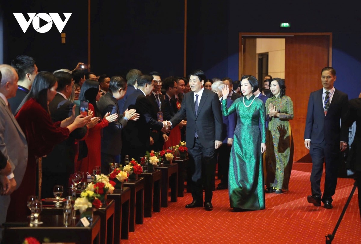 Chủ tịch nước nhấn nhấn mạnh, cộng đồng người Việt ở nước ngoài là một bộ phận máu thịt, không tách rời, là nguồn lực quan trọng của cộng đồng dân tộc Việt Nam. Ảnh: VOV |
