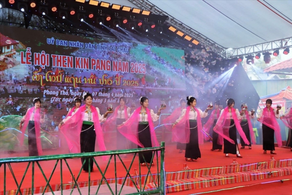 Lễ hội Then Kin Pang năm 2025 với chủ đề “Lời Then vọng mãi” khai mạc ngày 7/4 tại xã Khổng Lào, huyện Phong Thổ, tỉnh Lai Châu, thu hút đông đảo người dân và du khách tham gia. Ảnh: baodantoc.vn |