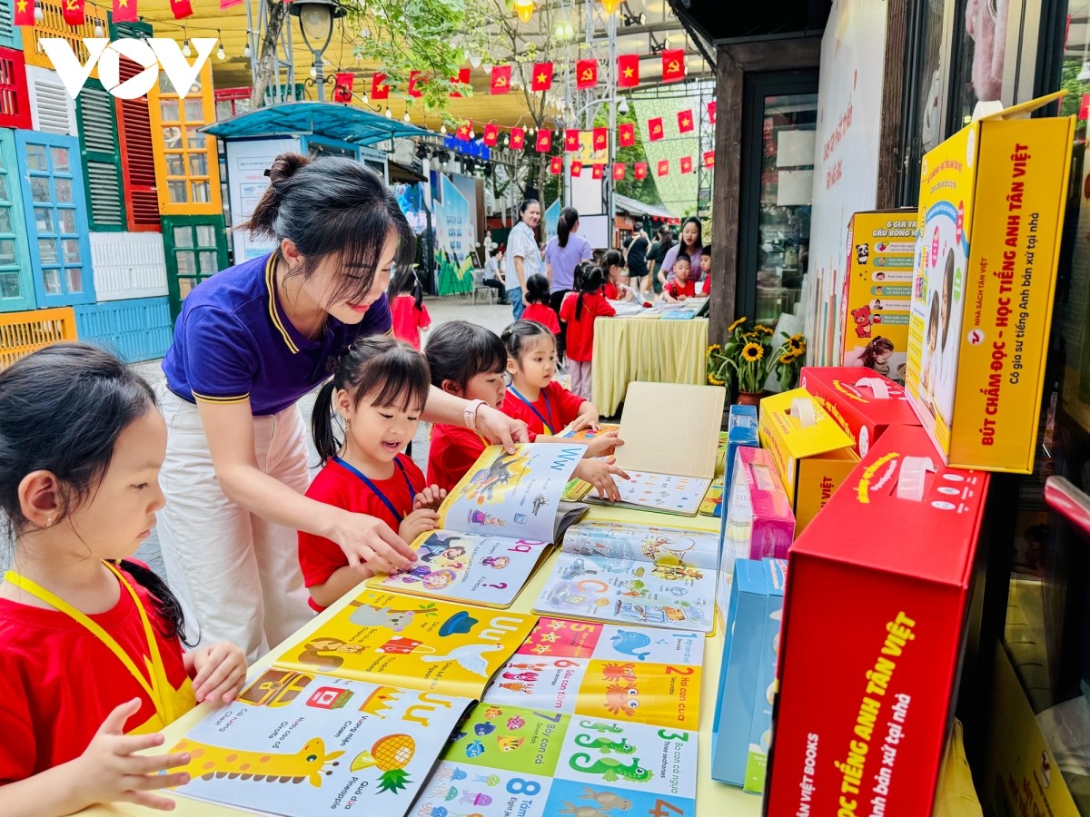 Cùng ngày, UBND quận Hoàn Kiếm tổ chức chuỗi sự kiện hưởng ứng ngày Sách và Văn hóa đọc Việt Nam lần thứ 4 chào mừng kỷ niệm 8 năm ngày thành lập Phố Sách Hà Nội (1/5/2017 - 1/5/2025) với chủ đề “Sách mở rộng thế giới tư duy”. (Trong ảnh: Các em thiếu nhi tại Phố Sách Hà Nội. Ảnh: Hải Nam/VOV) |