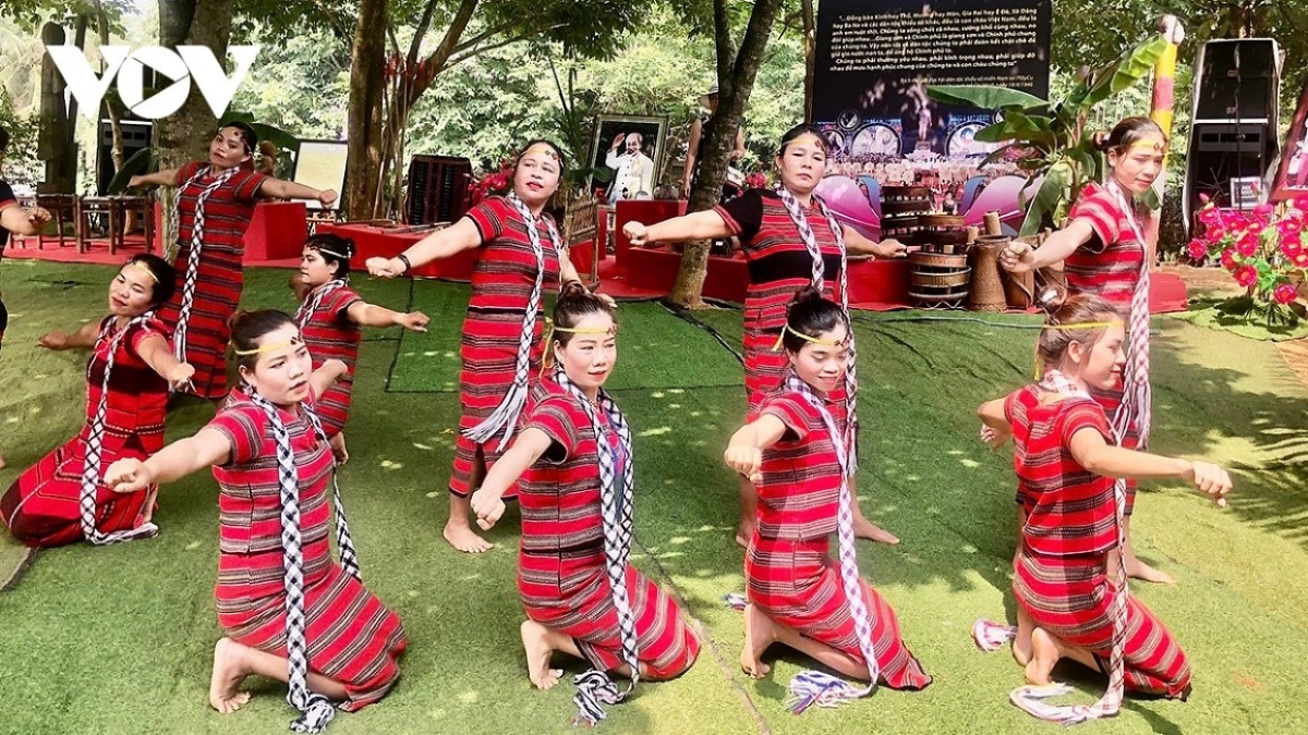 Chuỗi hoạt động với sự tham gia của khoảng hơn 100 đồng bào của 16 dân tộc đang hoạt động hằng ngày tại Làng Văn hóa - Du lịch các dân tộc Việt Nam. Ảnh: Thư Vũ/VOV |