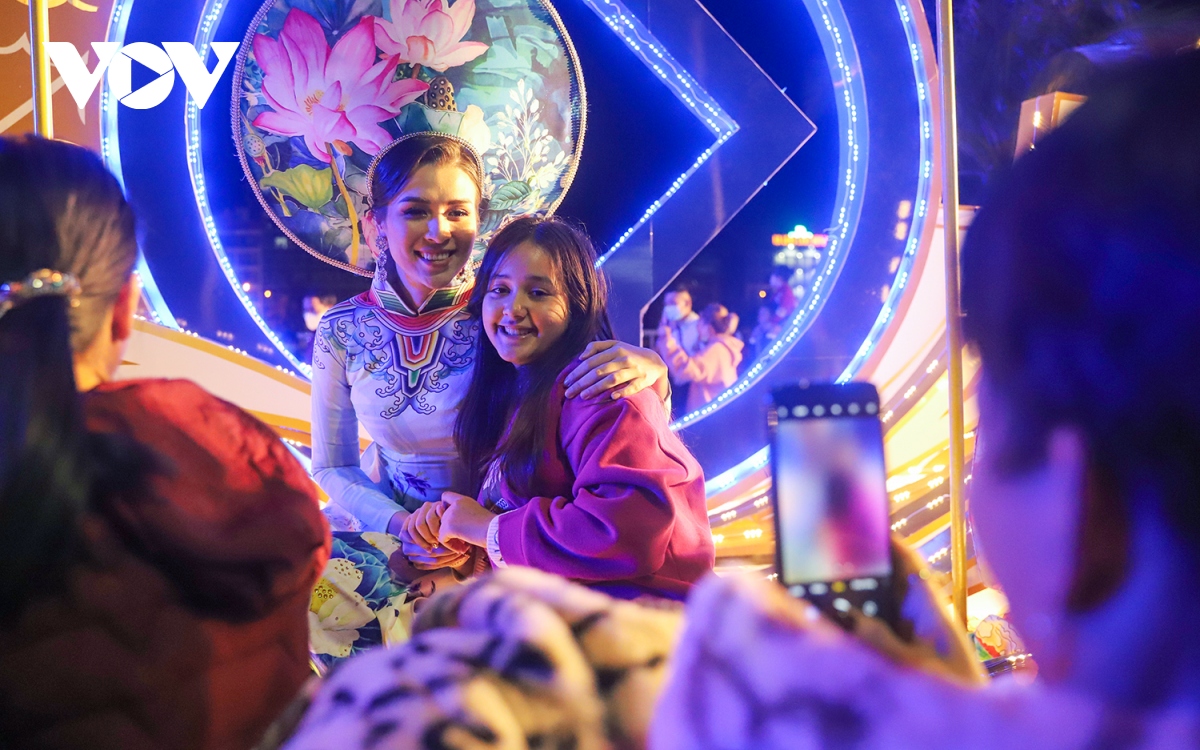 Hào hứng chụp ảnh và giao lưu với các Hoa hậu, Á hậu và các nghệ sĩ ngay trên đường phố. |