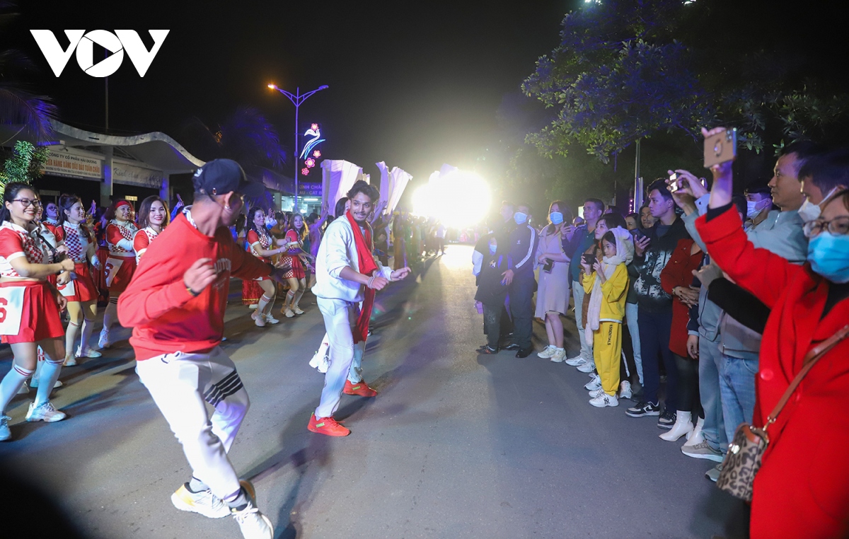 Người dân, du khách đổ về tuyến đường diễu hành, hòa cùng niềm vui và không khí sôi động của đoàn carnaval. |