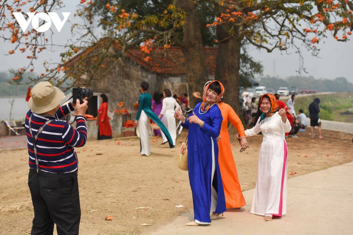 Mỗi dịp tháng 3 về, lượng khách đến đây rất đông, chủ yếu là chị em phụ nữ, để lưu lại kỷ niệm mùa hoa gạo nở. |