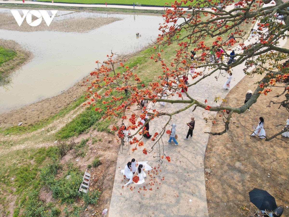 Hàng nghìn bông hoa gạo bung nở rực rỡ, sáng bừng cả một vùng, trở thành tọa độ check-in thu hút du khách thập phương đổ về đây chiêm ngưỡng. |