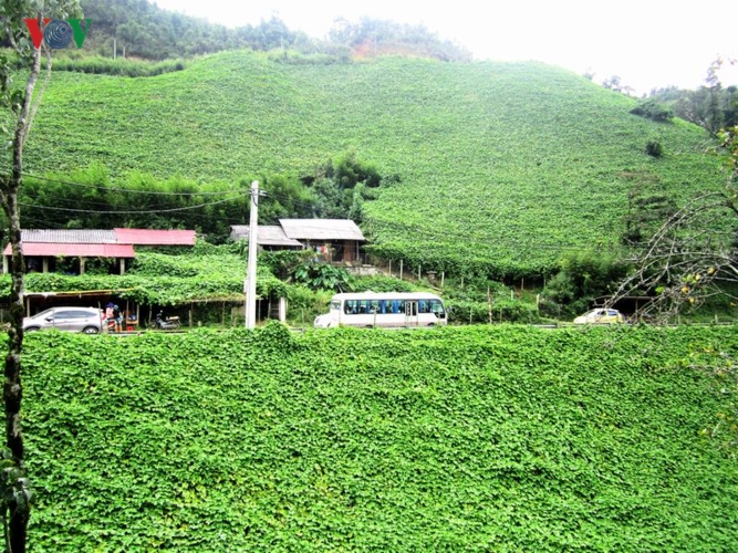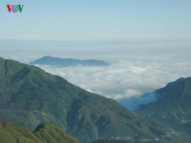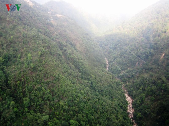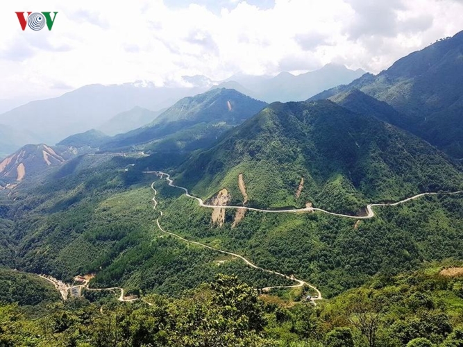 Phía trên và dưới đèo là những cánh rừng già xanh thẳm đến ngút ngàn. |