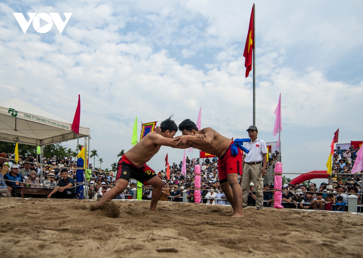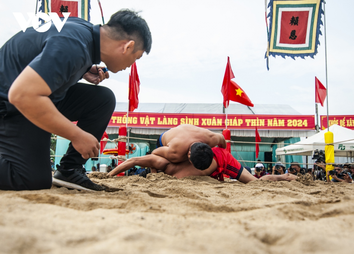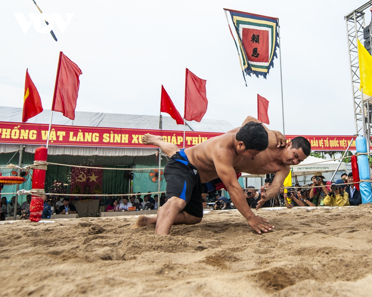 Sau tiếng trống khai hội, các đô vật đã biểu diễn những thế vật đẹp, tiếp đến là các đô vật lứa tuổi thiếu niên, thanh niên tham gia tranh tài. Các đô vật lên sới đấu không nhất thiết phải là người địa phương, mà bất kỳ người dân hoặc du khách nào cũng có thể đăng ký tham gia. Năm nay, sới vật làng Sình diễn ra hào hứng, sôi nổi suốt cả ngày. |