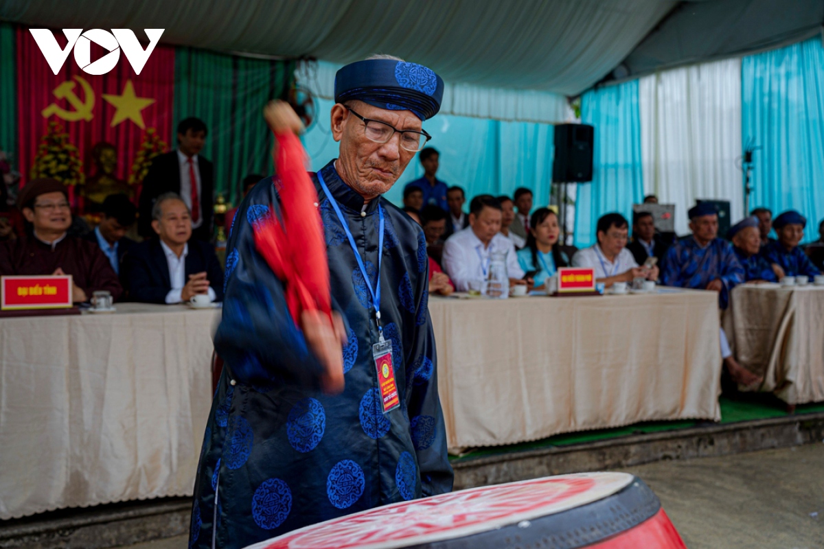 Vị bô lão trong làng sẽ cầm dùi đánh trống trong suốt lễ hội vật. |