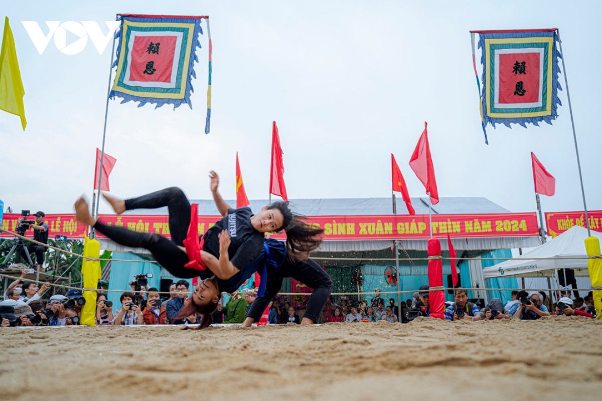 Ngoài các đô vật nam, hội vật làng Sình còn có sự tham gia của các đô vật nữ với những đòn thế đẹp không kém nam giới. |