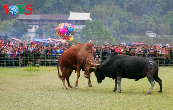 Lướt qua một vòng những trò chơi đậm chất vùng cao. Nơi đông vui nhất vẫn là khu chọi bò và đua thuyền độc mộc. Những “đấu sỹ bò” vốn là bò cày nhưng khi vào sới đấu cũng tỏ ra vô cùng dũng mãnh với nhiều miếng đánh vô cùng hiểm hóc, khiến đấu thủ chịu thất bại cùng với nhiều thương tích trên cơ thể.
