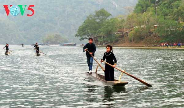 Các đôi chèo trong trang phục truyền thống dân tộc Tày ra sức chèo trong tiếng reo hò của hàng ngàn người trên bờ, sáng vùng cao trời lạnh nhưng tay chèo nào cũng ướt đẫm mồ hôi. Và đặc biệt, dù thắng hay thua, các đôi chèo cũng đều vui vẻ, bởi phần thưởng lớn nhất đối với họ chính là buổi giao lưu bên mâm rượu ngày xuân sau mỗi cuộc thi.