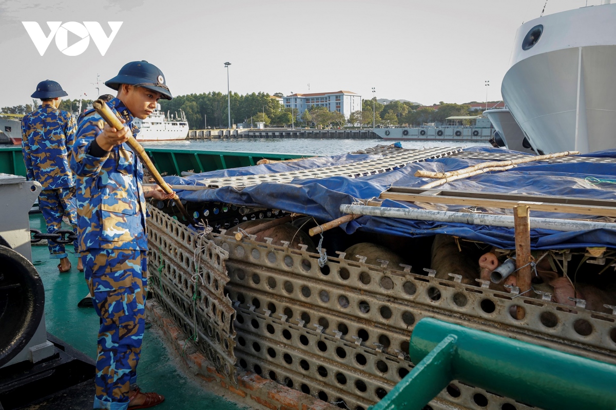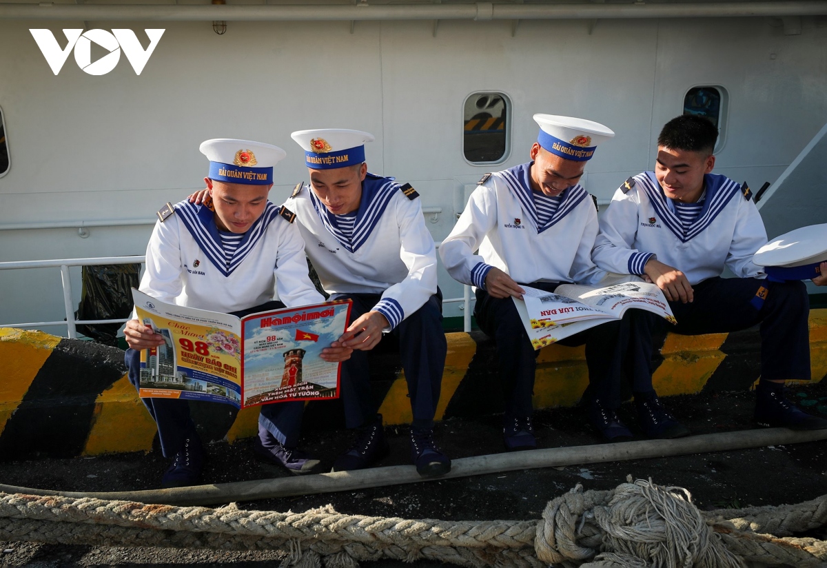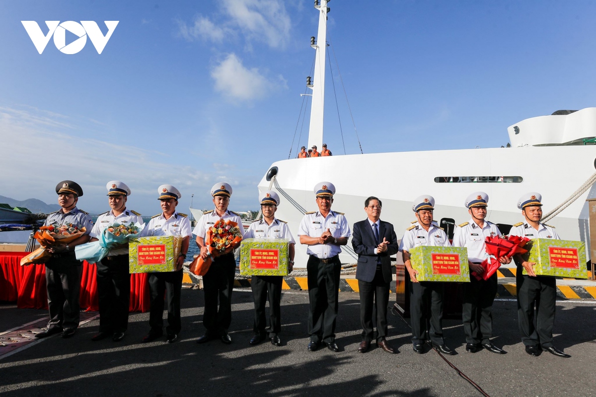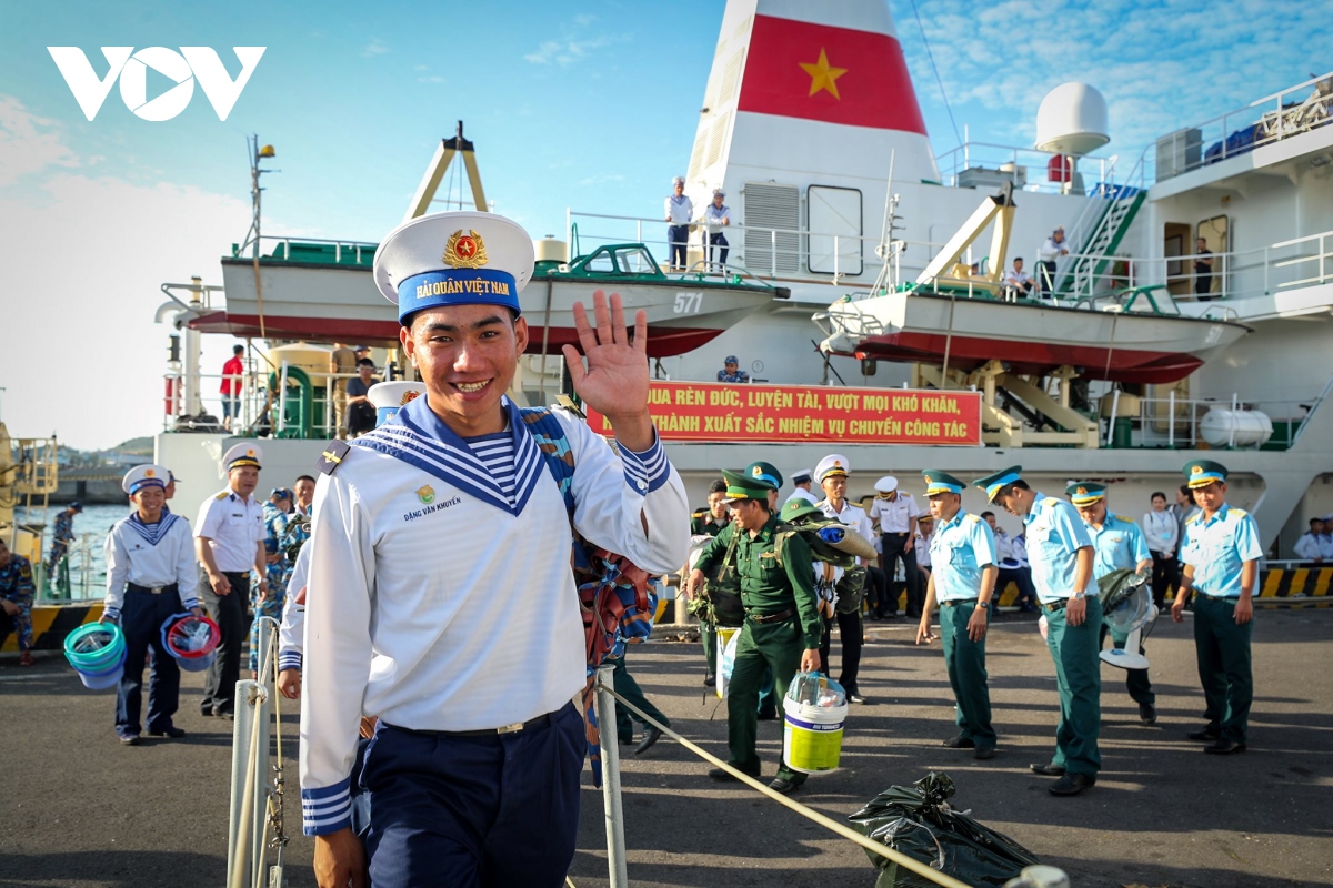 Sau 3 hồi còi chào bến cảng quê hương, những con tàu đưa Đoàn công tác và hàng trăm tấn hàng hoá, quà Tết rẽ sóng ra Trường Sa, mang hơi ấm đất liền đến với những người lính Hải quân đang ngày đêm vững chắc tay súng, canh giữ biển đảo của Tổ quốc. |