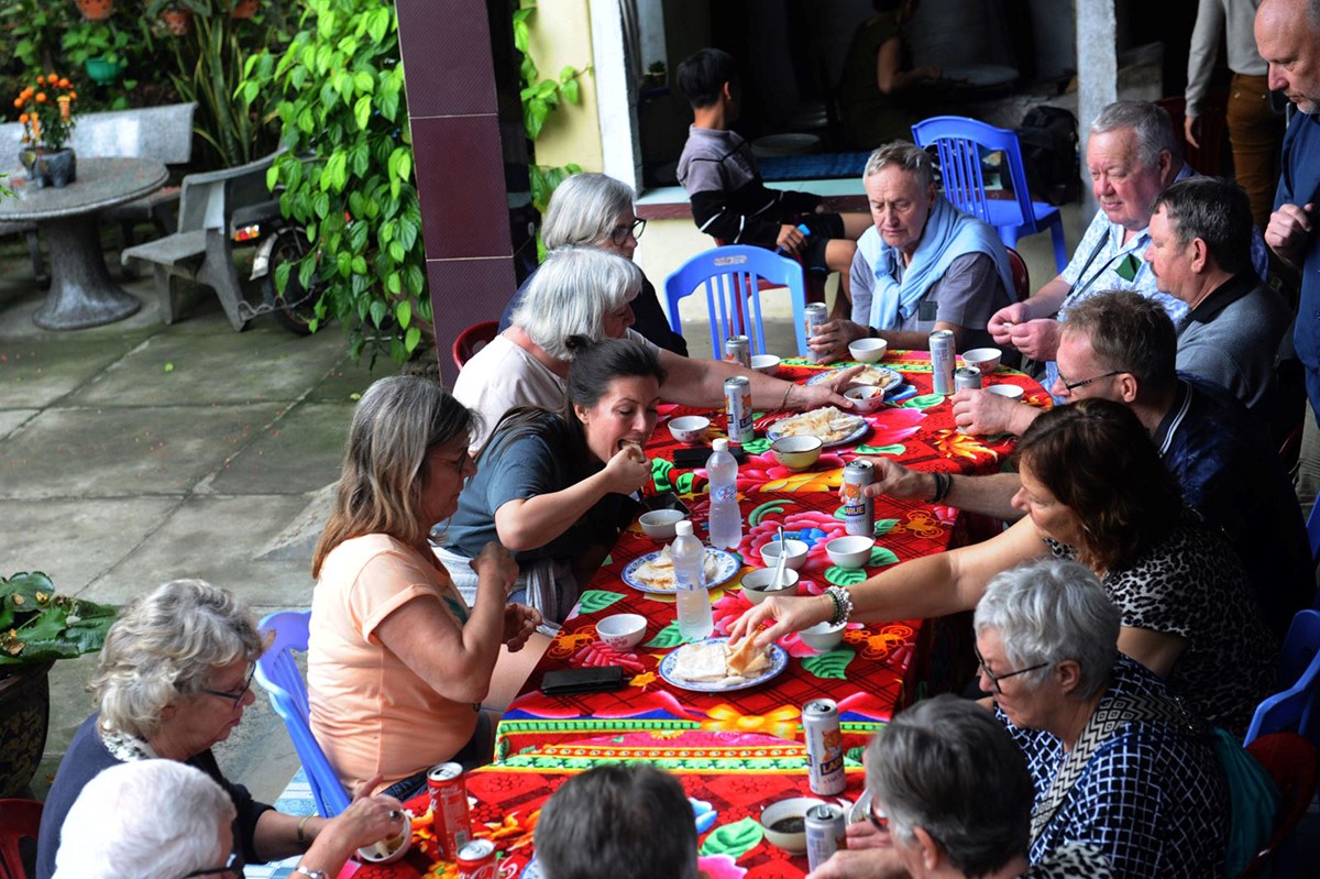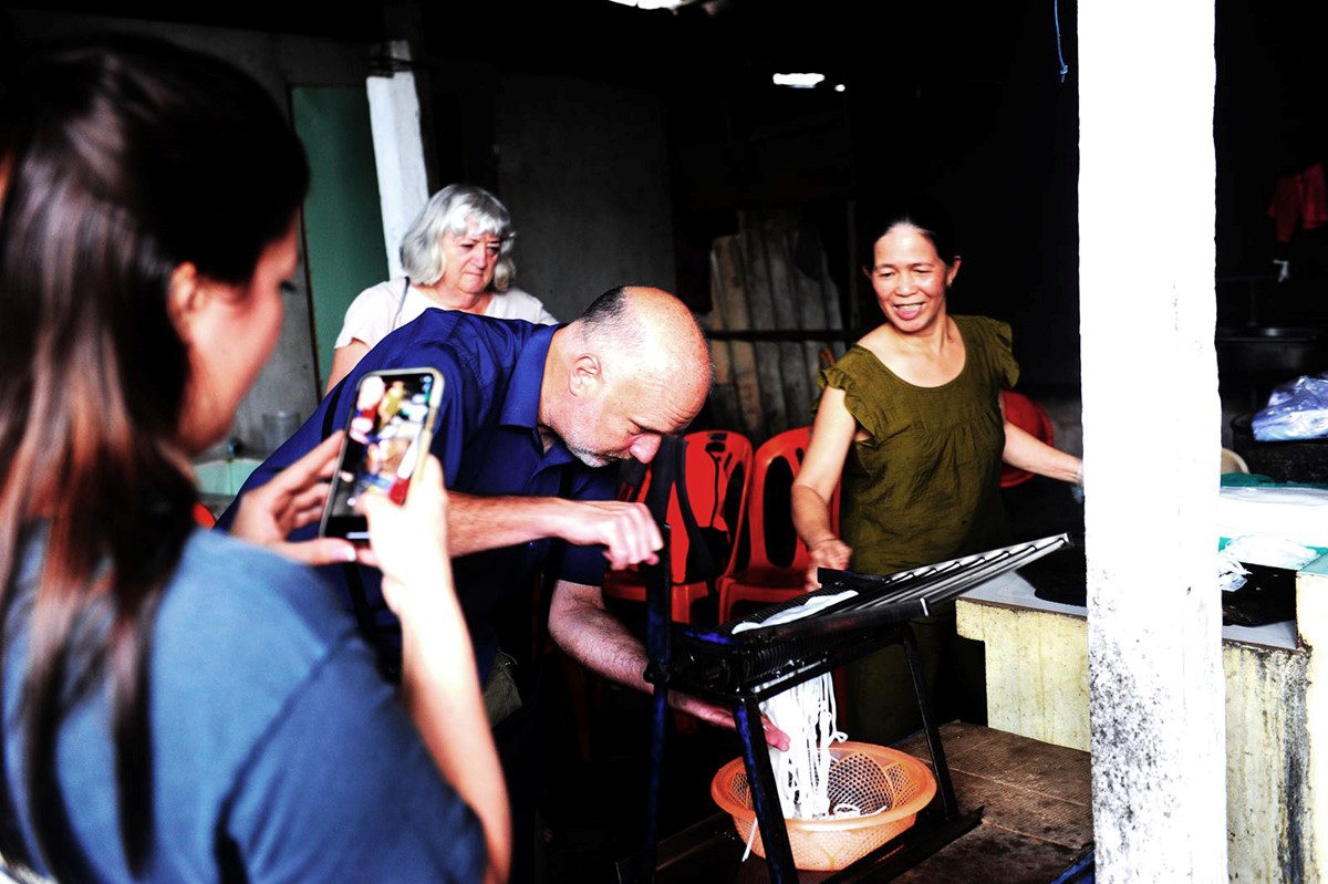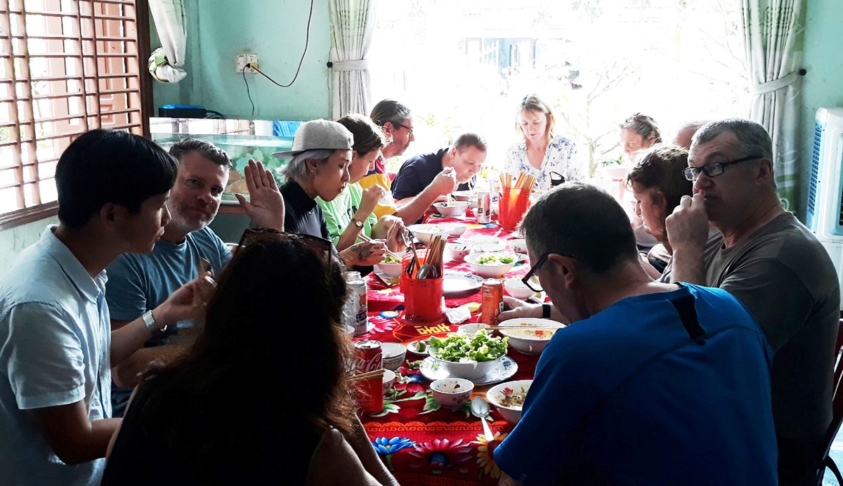 Sau khi học, du khách thưởng thức mì Quảng. |
