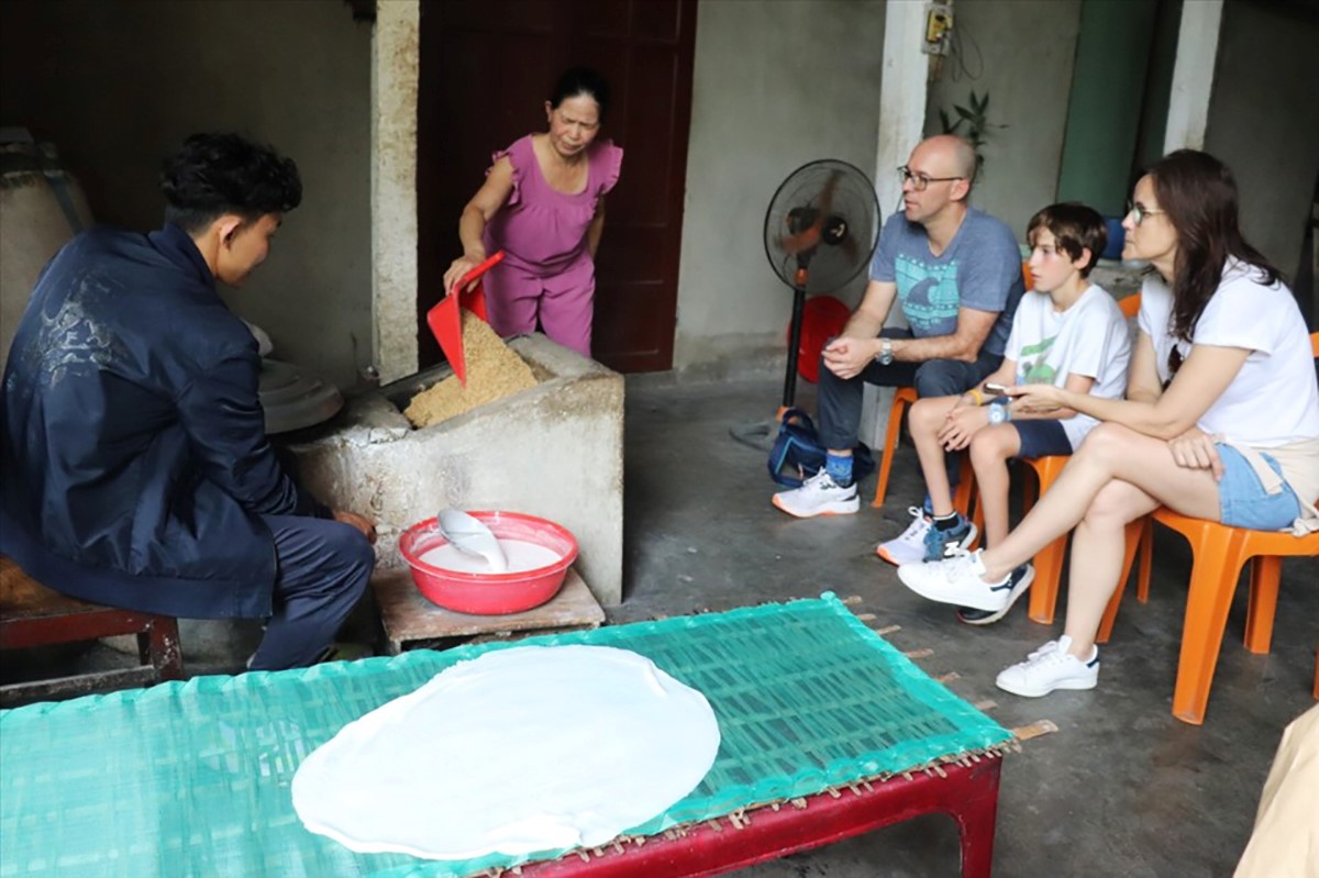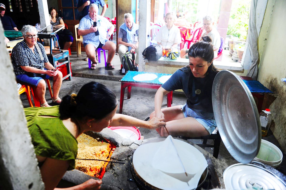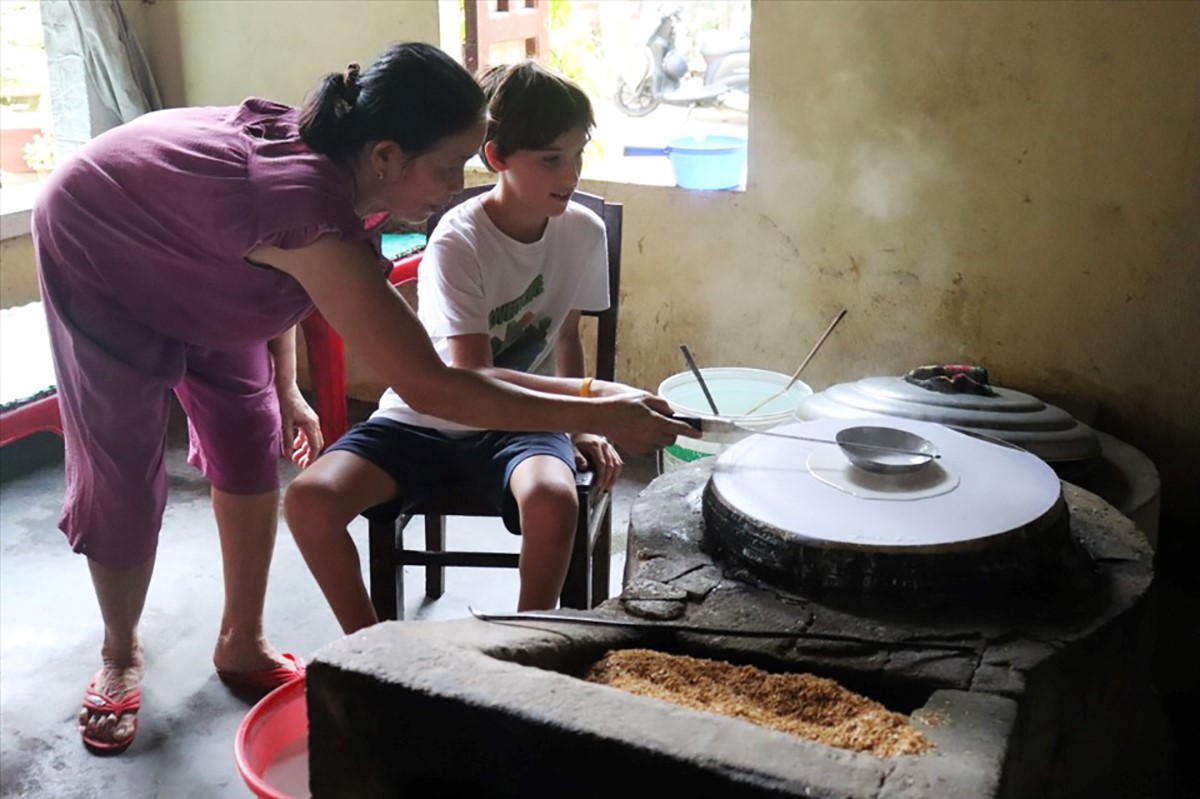 Rất đông du khách nước ngoài tìm đến các làng nghề truyền thống tại Quảng Nam để được tham quan, trải nghiệm, trong đó có lò mì Quảng bà An ở thôn Hạ Mỹ, xã Duy Vinh, huyện Duy Xuyên, tỉnh Quảng Nam.