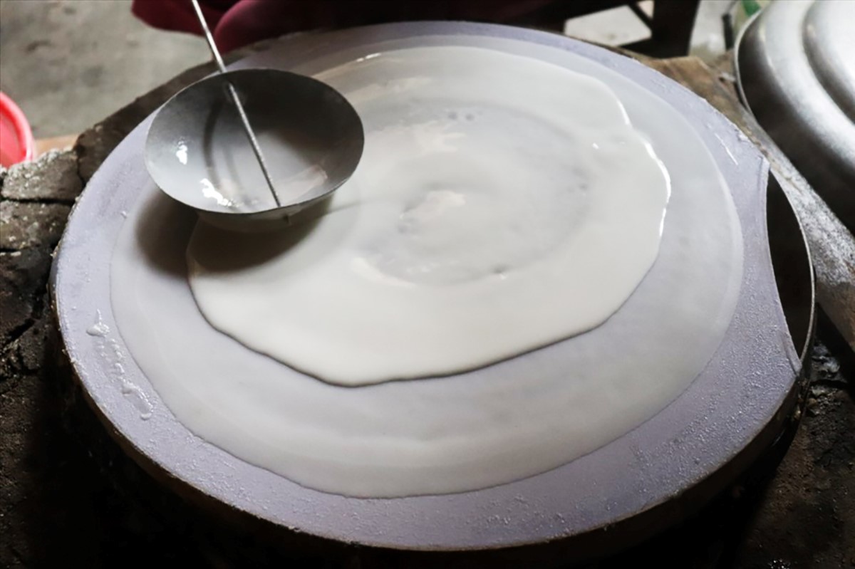 Từng công đoạn xay bột, tráng mì... bà An đều làm thật chậm để du khách có thể học theo. Ảnh: Nguyễn Linh/laodong.vn |