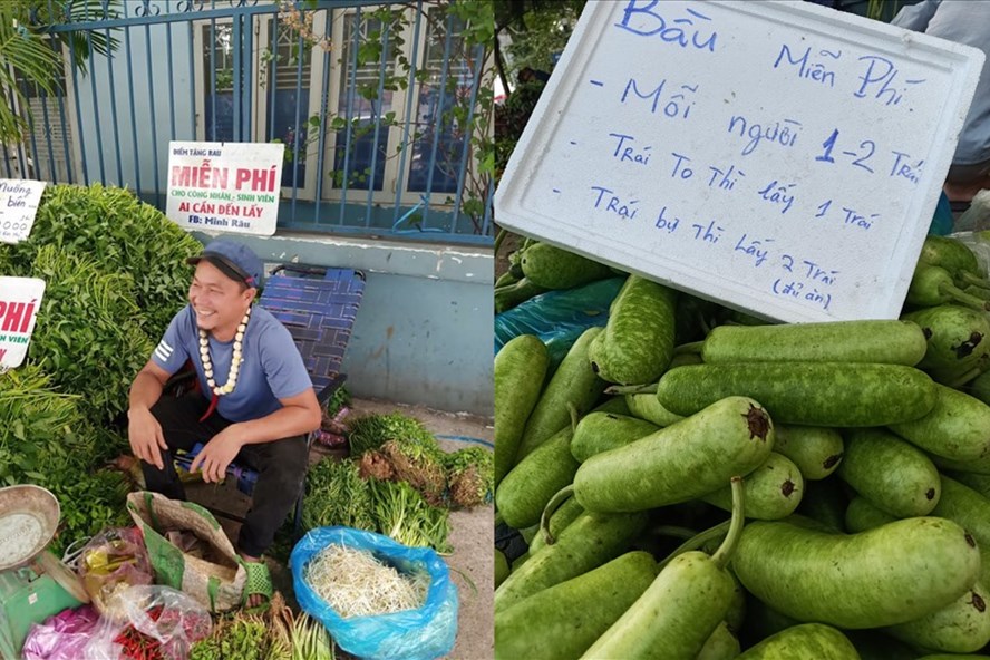 Ông chủ Minh Râu và sạp rau 0 đồng (ảnh nhân vật chụp trước khi dịch bùng phát ở Đồng Nai). Ảnh: MCV. |