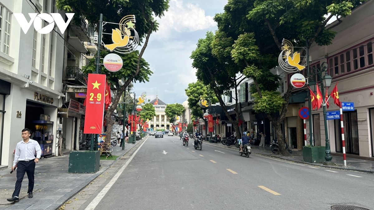 Không khí chào mừng kỷ niệm 79 năm Cách mạng Tháng Tám và Quốc khánh 2/9 (2/9/1945 - 2/9/2024) lan tỏa khắp phố phường Thủ đô. |