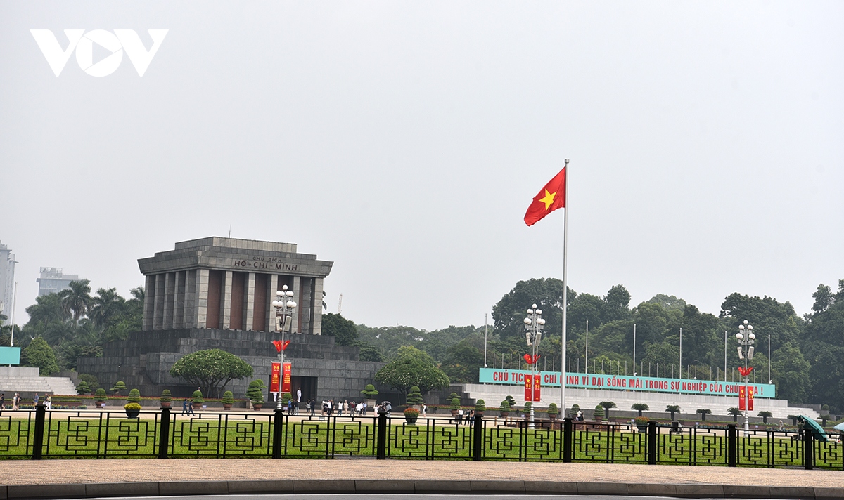 Lăng Chủ tịch Hồ Chí Minh trên Quảng trường Ba Đình và các tuyến phố trung tâm Hoàng Diệu, Hùng Vương, Đinh Tiên Hoàng, Điện Biên Phủ... đã được trang trí bằng băng rôn khẩu hiệu, pano ...chào mừng kỷ niệm 79 năm Cách mạng Tháng Tám và Quốc khánh 2/9. |