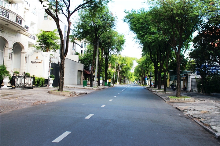 Đường Lê Văn Tám (quận 1) cũng không một bóng người.