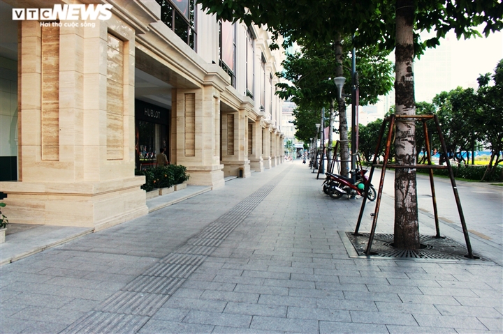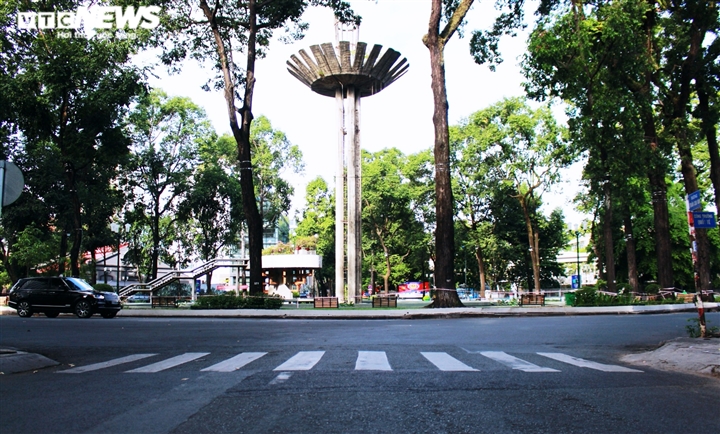 Phố đi bộ Nguyễn Huệ vắng lặng, không một bóng người.