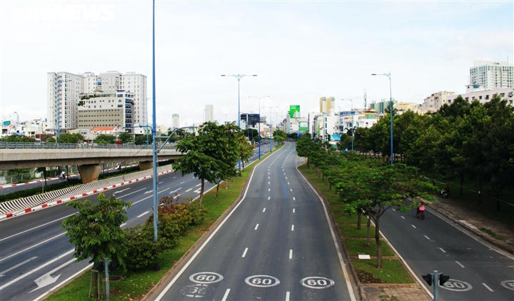Sáng 9/7, ghi nhận của PV VTC News tại đại lộ Võ Văn Kiệt - con đường được xem là đẹp nhất Sài Gòn vắng người qua lại.