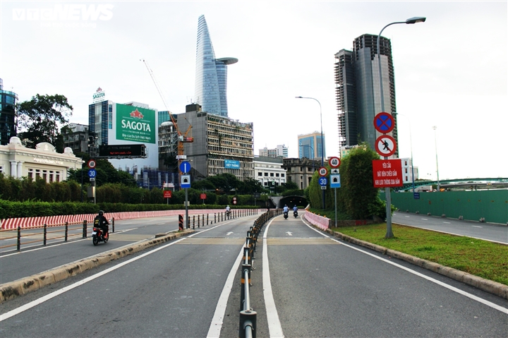 Hầm Thủ Thiêm nối quận 1 (TP.HCM) và TP Thủ Đức cũng chỉ lác đác vài xe qua lại.