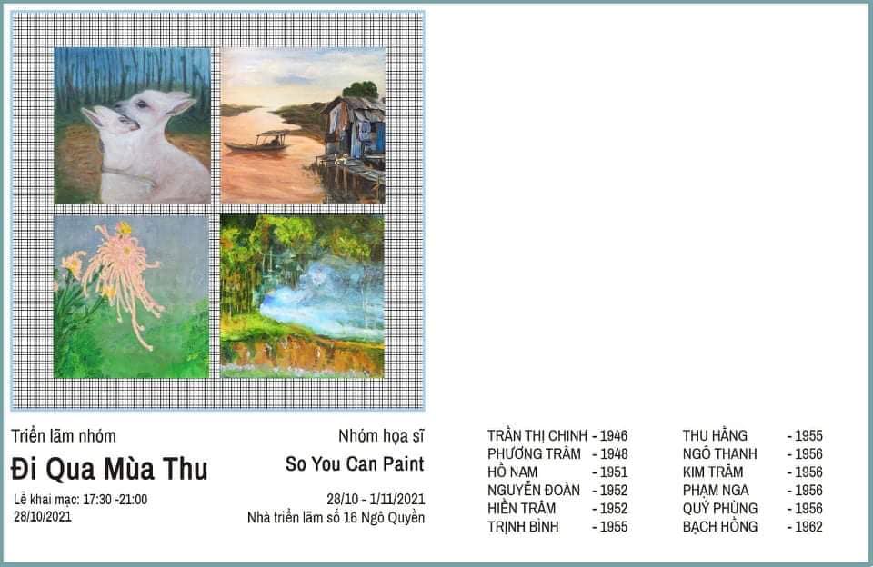 Nhà triển lãm Mỹ thuật 16 Ngô Quyền, Hà Nội (Hội Mỹ thuật Việt Nam) tổ chức triển lãm tranh “Đi qua mùa Thu” của nhóm hoạ sỹ “So you can paint” với 60 bức tranh của 12 họa sỹ nghiệp dư cao tuổi. Triển lãm nhằm động viên, khích lệ người cao tuổi tham gia các hoạt động văn hoá, nghệ thuật nhằm nâng cao giá trị tinh thần, hướng đến cuộc sống tươi trẻ đối với những người đã về hưu.