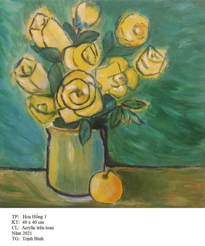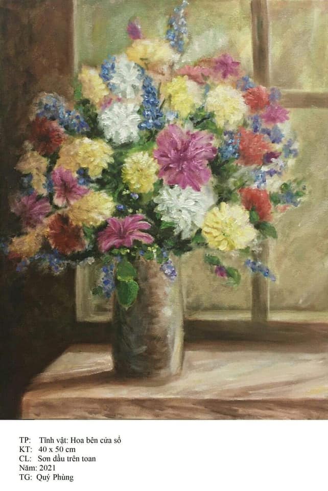 Tác phẩm Cúc móng rồng cổ - acrylic trên toan - 40x60 cm sáng tác 2019 tác giả: Hiền Trâm. |