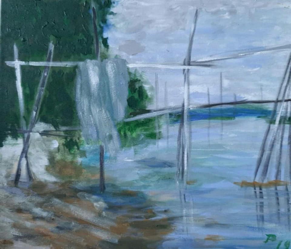 Tác phẩm Phơi lưới - acrylic trên toan - 50x60cm. sáng tác 2019 Tác giả: Phương Châm. |