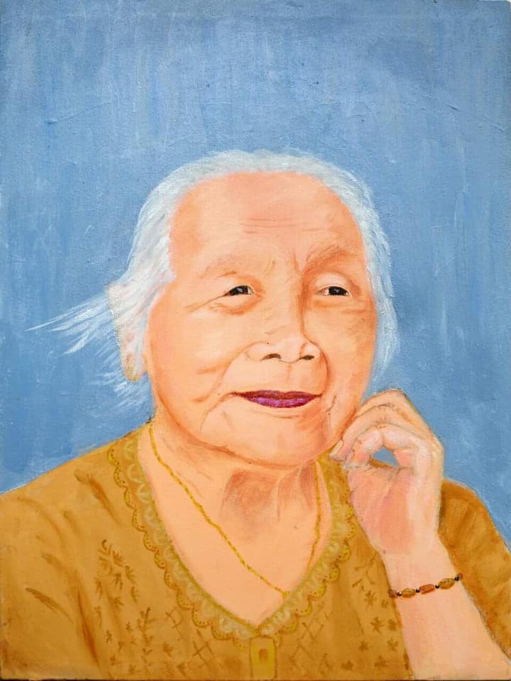Chân dung mẹ Doãn Ngọc Trâm - acrylic trên toan 50x70cm. sáng tác 2021. Tác giả Hồ Nam. |