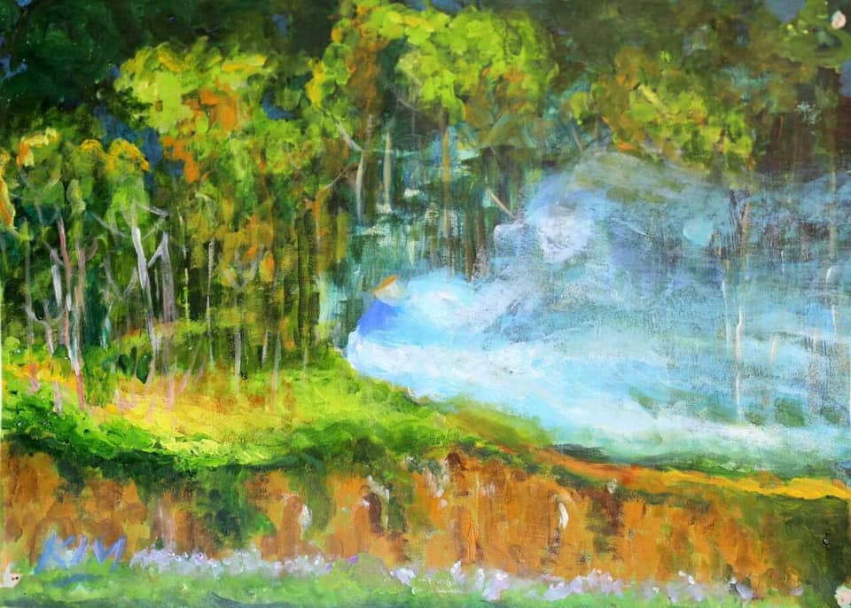 Tác phẩm Nương chiều - Acrylic trên giấy bìa - 55x40cm - sáng tác 2017. Tác giả: Kim Trâm |