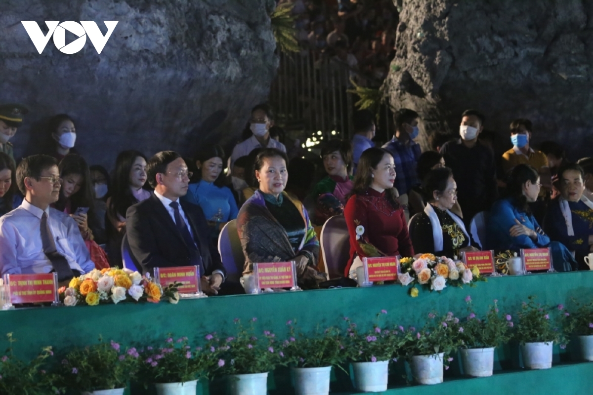 Phó Chủ tịch nước Võ Thị Ánh Xuân, bà Nguyễn Thị Kim Ngân – nguyên Chủ tịch Quốc hội cùng đông đảo người dân và du khách tham dự Festival Áo dài Quảng Ninh 2022 tại TP Cẩm Phả tối 29/4.