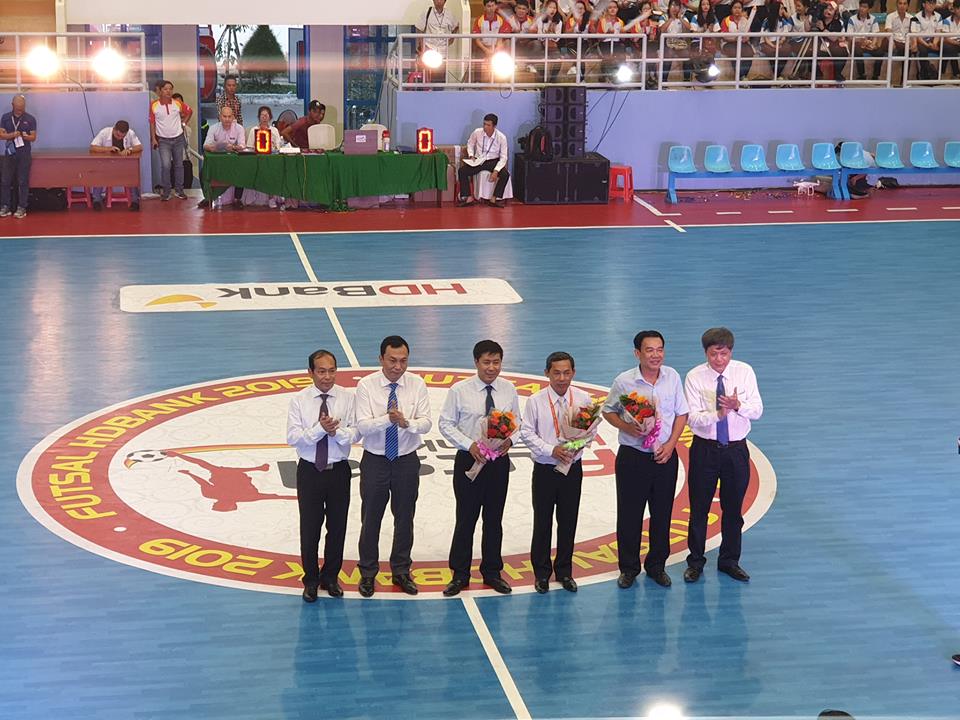 | Dự lễ khai mạc có ông Nguyễn Đắc Tài- Phó Chủ tịch UBND tỉnh Khánh Hòa, các ông Vũ Hải, Trần Minh Hùng, Nguyễn Xuân Huy- Phó Tổng giám đốc Đài TNVN, ông Trần Quốc Tuấn- Phó Chủ tịch LĐBĐ Việt Nam, các khách mời danh dự và đông đảo NHM futsal tỉnh Khánh Hòa. |