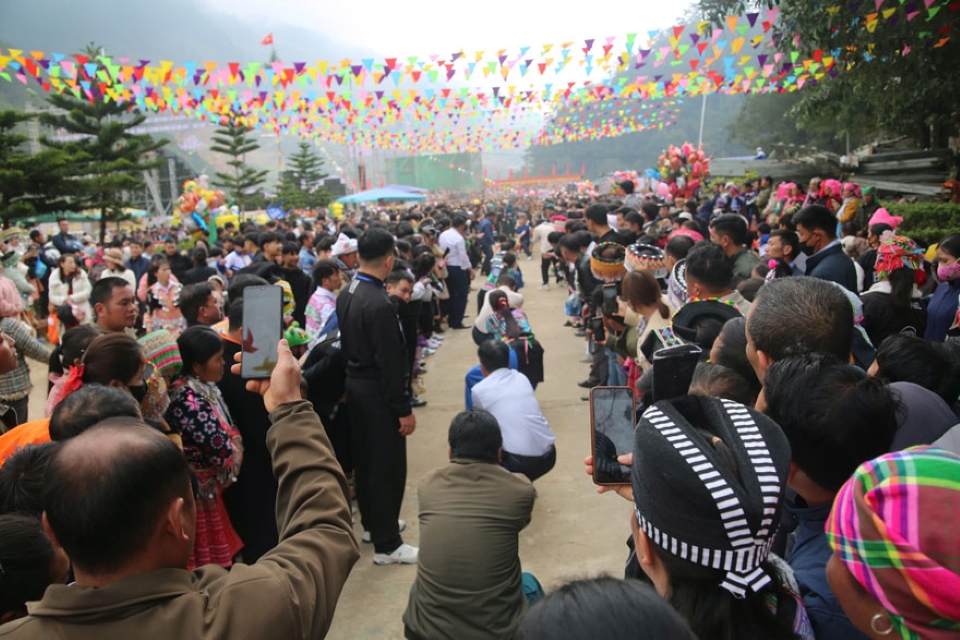 Lễ hội là dịp để đồng bào Mông gắn tình đoàn kết trong cộng đồng thôn bản và gìn giữ nét văn hóa truyền thống tốt đẹp của dân tộc. Ảnh: An Vi/laodong.vn |