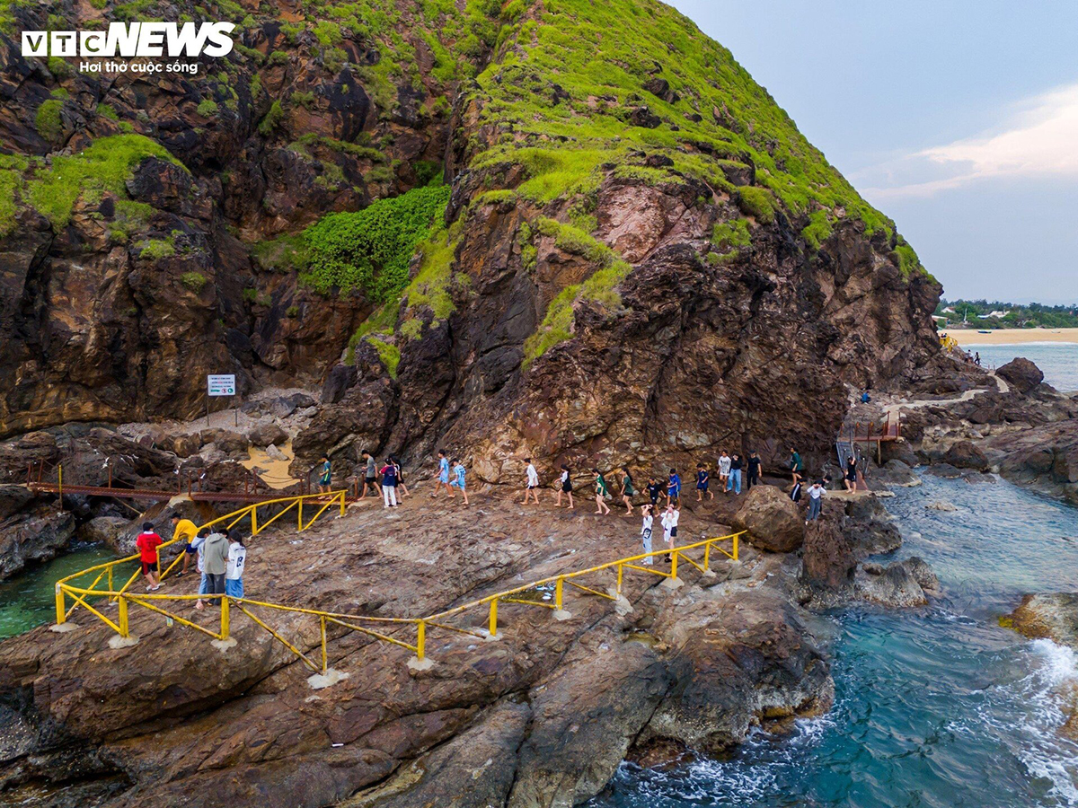 Theo ông Trần Minh Lâm, Chủ tịch UBND xã Hoài Hải (thị xã Hoài Nhơn, Bình Định), vào những ngày cuối tuần có khoảng 1.500-2.000 lượt khách đến tham quan ghềnh đá Hoài Hải. |