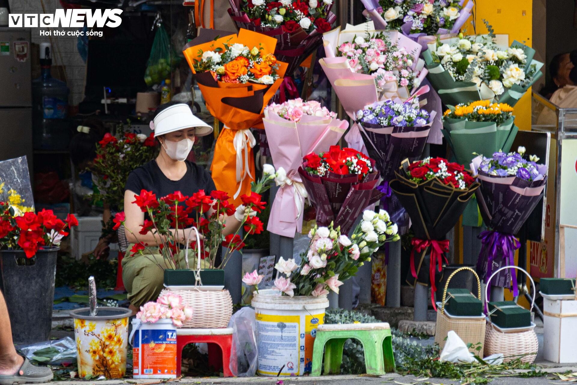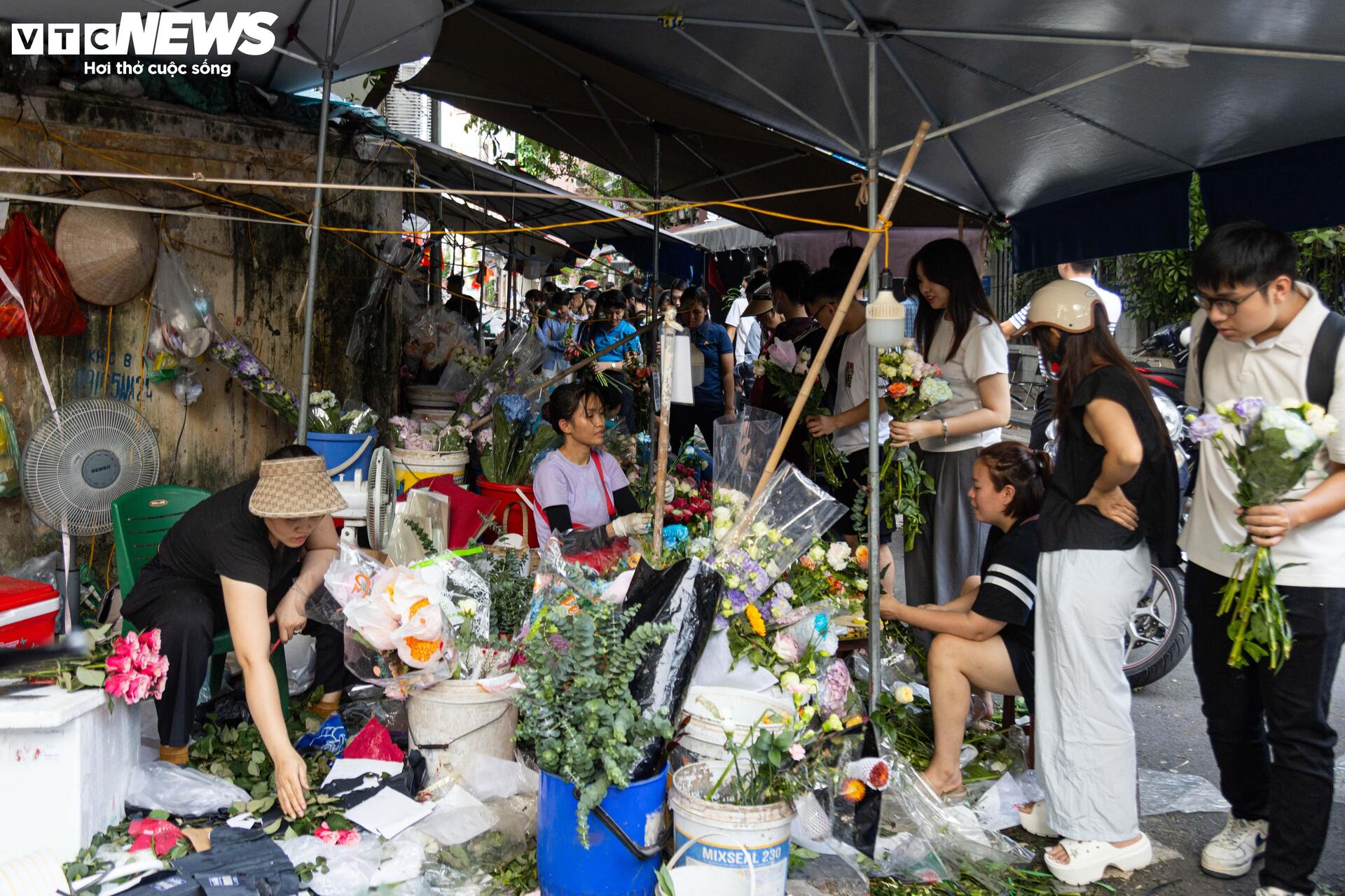 | Tại một góc phố Trương Hán Siêu (quận Hoàn Kiếm) tuy chỉ có 2,3 quầy hoa tươi nằm sát nhau nhưng khách lại rất đông đúc. "Đa phần là các bạn sinh viên, học sinh tới đây để mua hoa vì giá cả phải chăng, chỉ từ 100.000 - 500.000 đồng/bó. Nhiều ngày nay, quầy hàng luôn kín người, chúng tôi làm luôn tay mà vẫn không kịp, khách cứ đến hết nhóm này rồi lại đến nhóm khác", một người bán chia sẻ. |