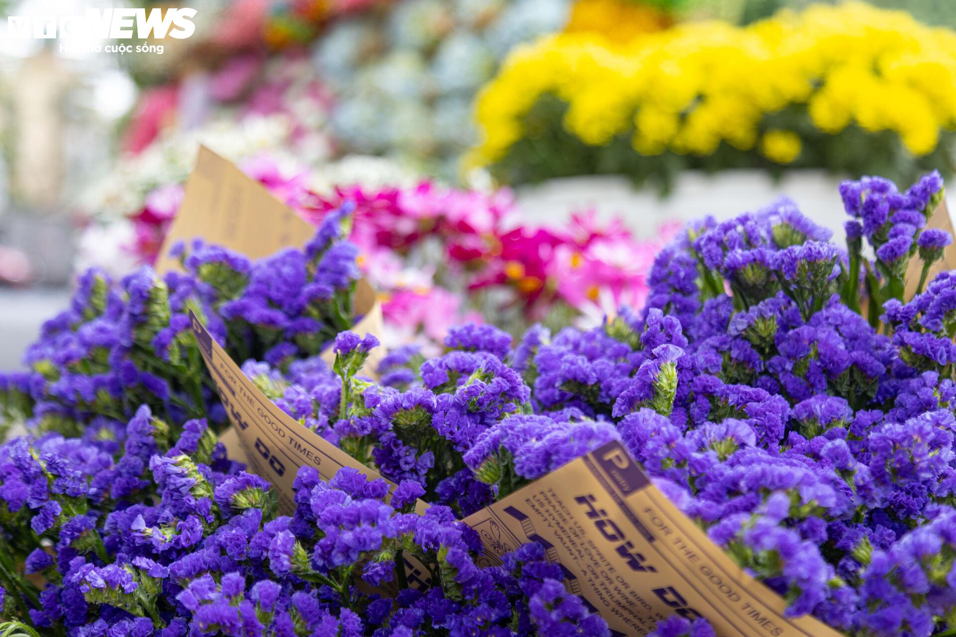 | Nhân viên bán hoa tươi tất bật, làm không ngơi tay, vui mừng vì năm nay đông khách hơn năm ngoái. |