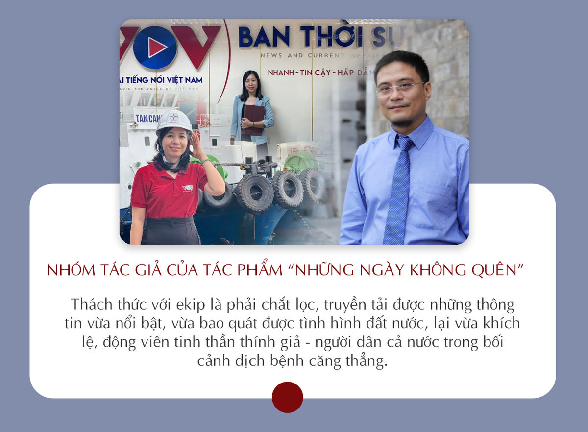 Theo ông Đồng Mạnh Hùng, tác phẩm đoạt giải A “Những ngày không quên” của VOV1, đã chạm đến những vấn đề rất mạnh mẽ của cuộc chiến chống đại dịch COVID-19 nhưng được thể hiện ở góc độ sáng tạo. Tác phẩm thể hiện rất rõ thế mạnh của phát thanh như sử dụng tiếng động hiện trường, âm nhạc, đặc biệt là sự lăn lộn của phóng viên, họ sẵn sàng đi đến các tâm dịch như Bạch Mai, TP. Hồ Chí Minh… để có thông tin tốt, chân thực, thuyết phục thính giả. Ngoài ra còn có sự kết nối với các cơ quan thường trú nước ngoài.