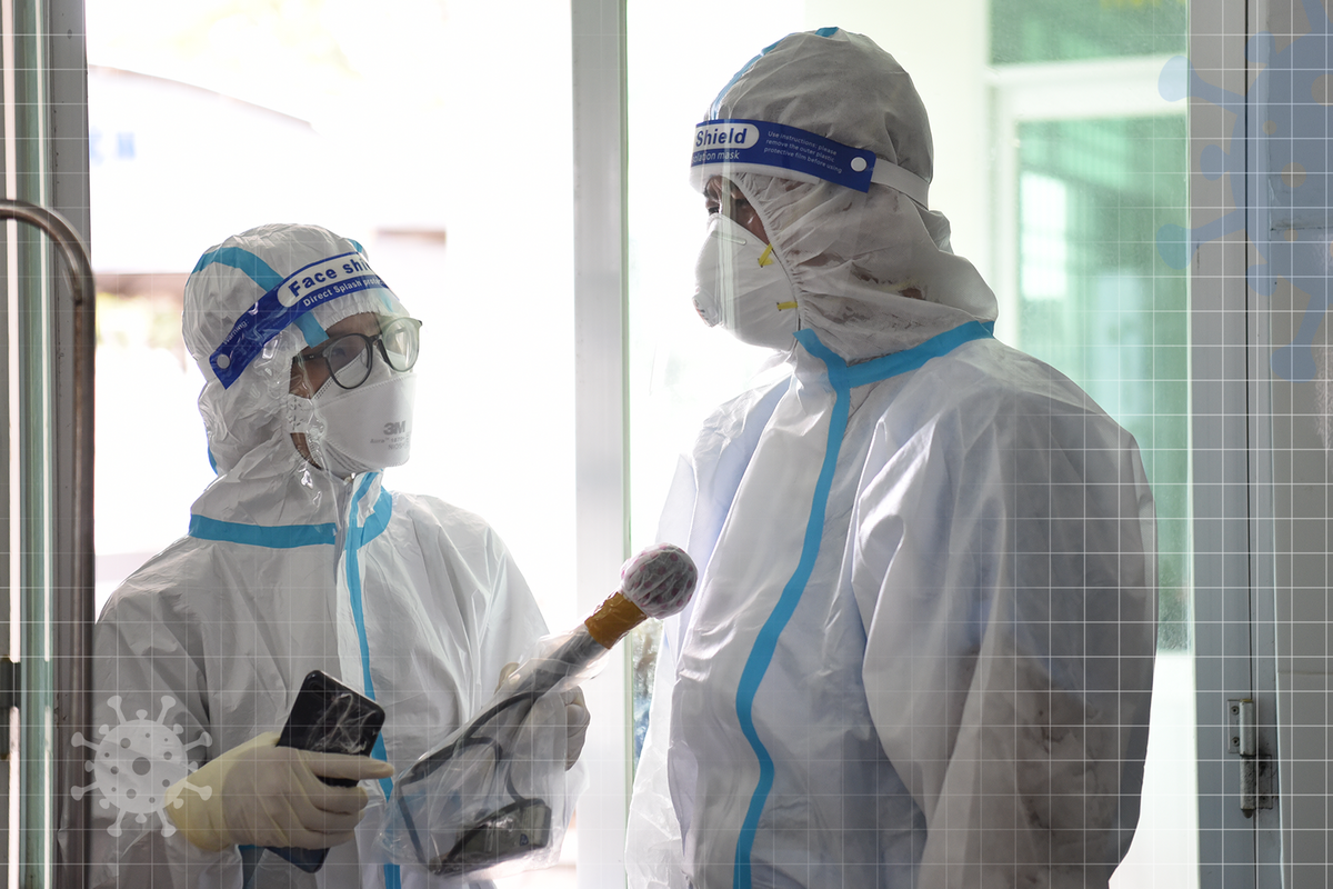 Các nhà báo tác nghiệp trong tâm dịch TP. Hồ Chí Minh. Ảnh: Thi Uyên |