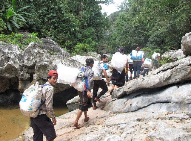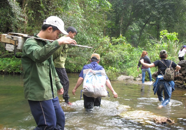 | Những đoạn phải lội suối như thế này không hề ít trong cung đường đến bản Dốc Mây |