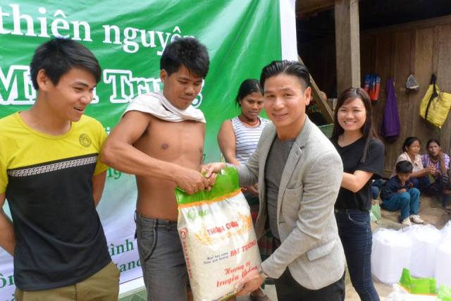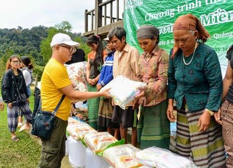 | Anh Phan Ty, Chủ tịch Hội từ thiện Mái ấm Việt Nam ở Anh quốc trao quà cho thanh niên dân tộc Vân Kiều. |