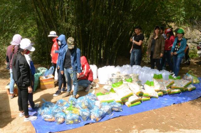 | Các bạn tình nguyên viên chuẩn bị các phần quà để trao cho bà con dân bản. |