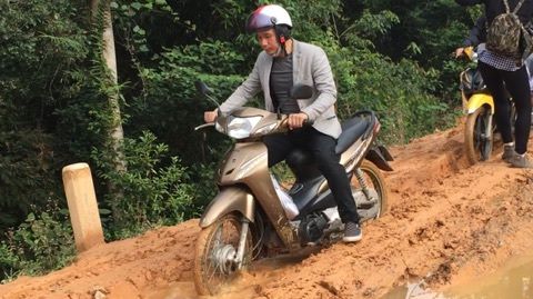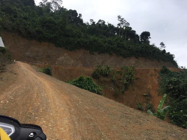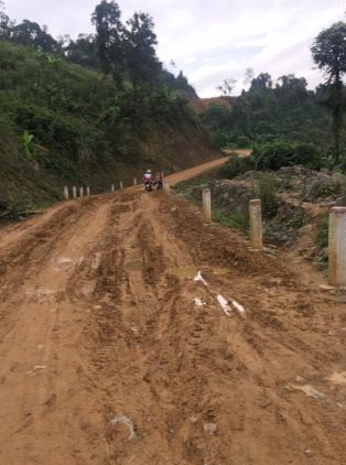 | Đường vào bản Sắt là đường đất. Trời mưa sẽ trở nên trơn trượt, rất khó khăn trong việc đi lại. |
